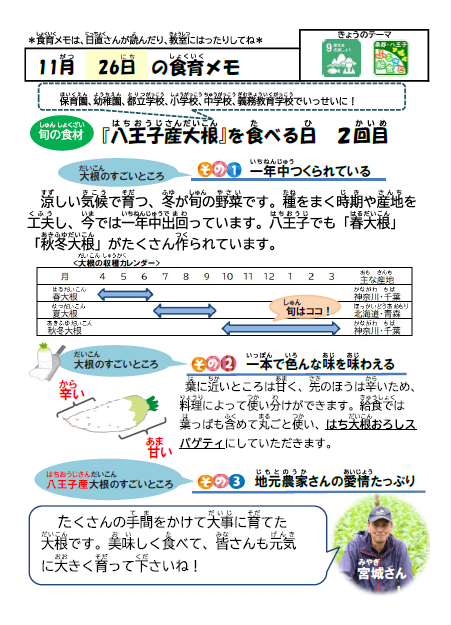 八王子の農家さんが大切に育てた大根を味わっていただきます。