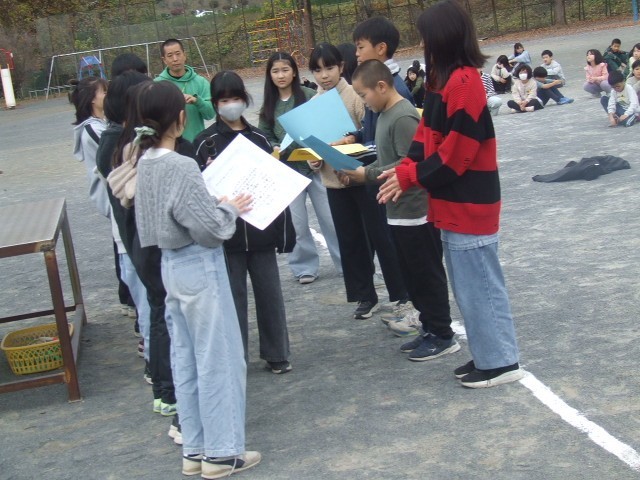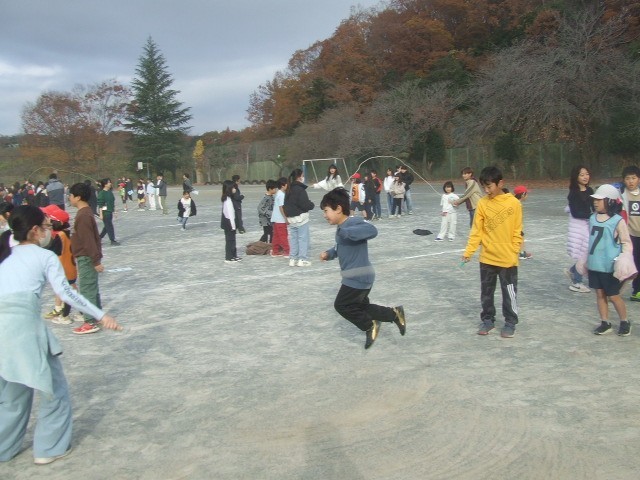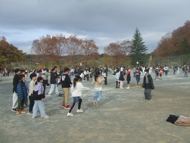 恒例の色別班大繩大会が行われました。各班がこれまでの練習を発揮しながら一生懸命跳んでいました。1年生から6年生までの絆がいっそう強くなったようです。体育委員会中心に、とても流れ進めていました。