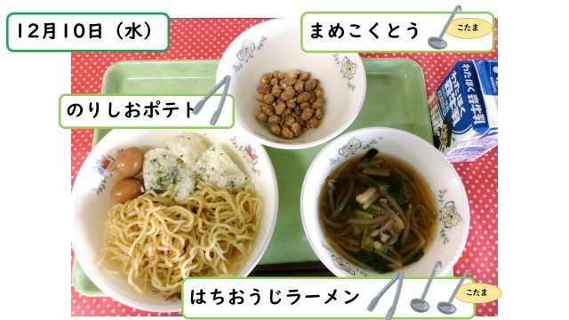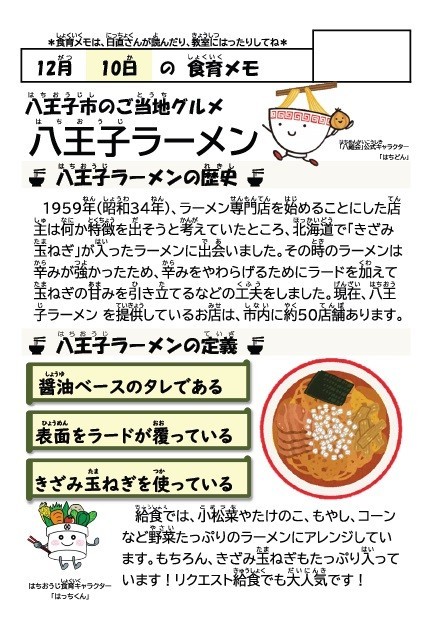 給食では煮干しとけずり節でだしをとり、八王子産の小松菜などの野菜もたっぷり入っているので栄養もとれます。