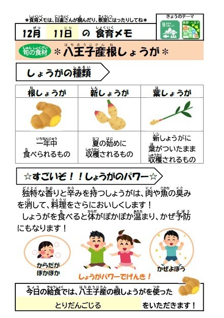 今日は八王子産の根しょうがを使った鶏だんご汁です。