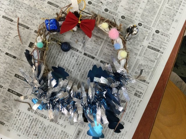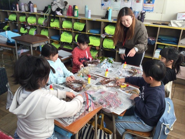 1年生の生活科で、アサガオのツルを利用してリースづくりに取り組んでいました。たくさんの飾りをつけて、とてもきれいなリースが完成しましたね!生活科の学習では、活動を通して季節感を感じさせることを重視しています。お手伝いくださいった保護者の皆様、ご多用の中ありがとうございました!