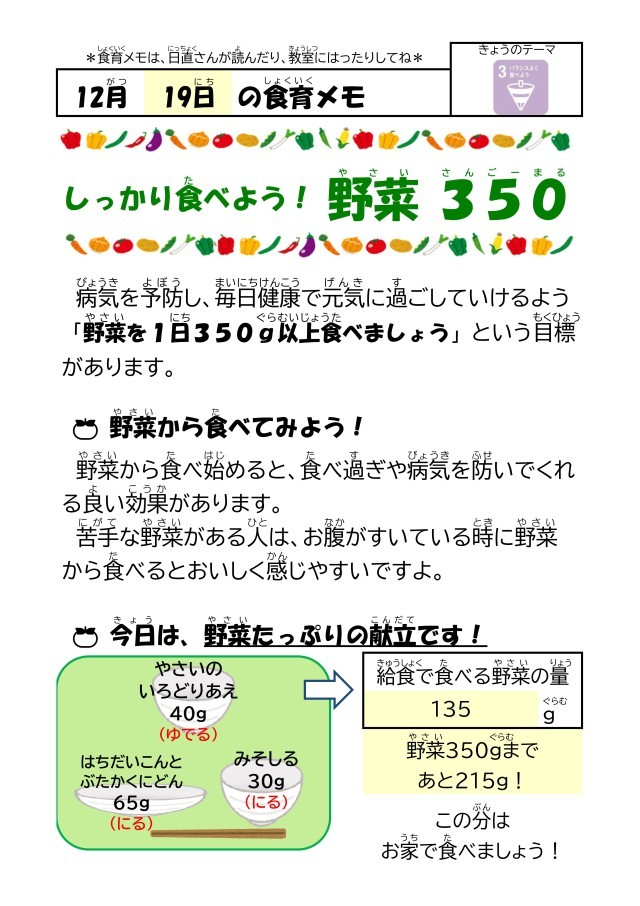 野菜をしっかり食べて元気に過ごしましょう!