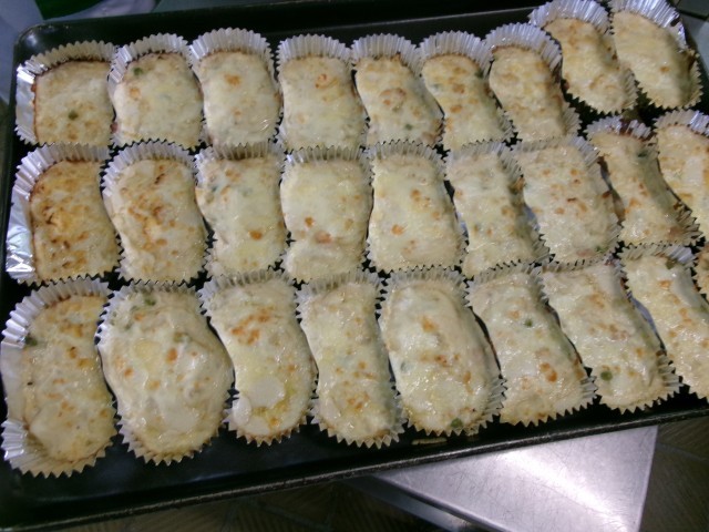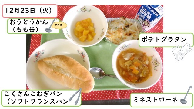 おかずは人気のポテトグラタンです。ホワイトルーから手作りで作っています。