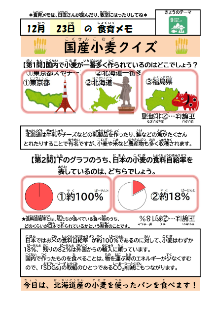 日本の小麦の食料自給率は約18%です。