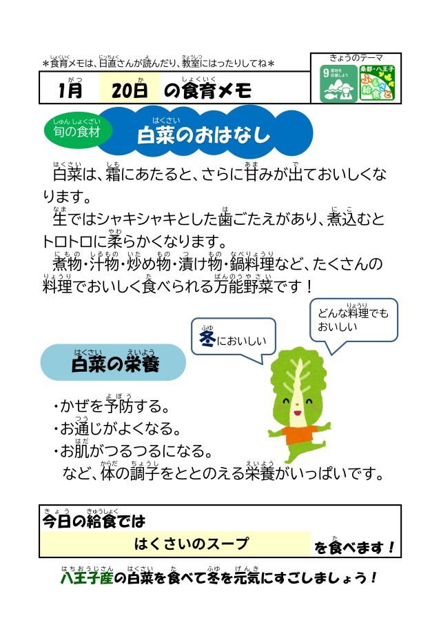 今日は八王子産の白菜を使った「白菜スープ」です。
