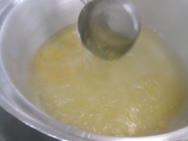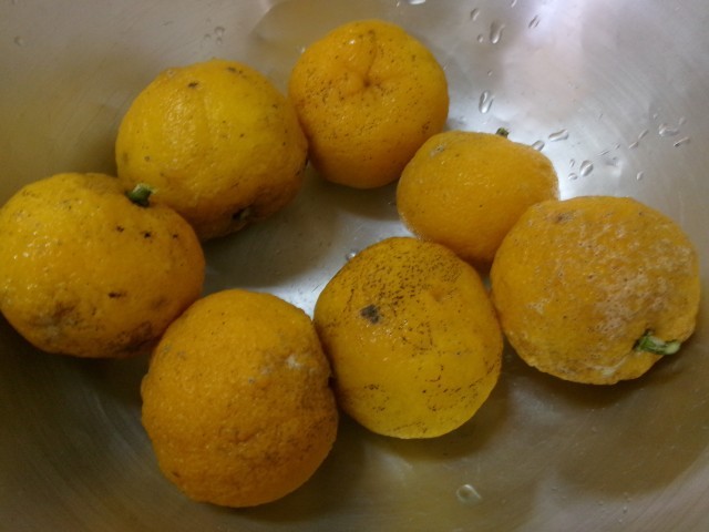 ゆずを丁寧に洗って皮も使い、はちみつと砂糖でシロップを作りました。