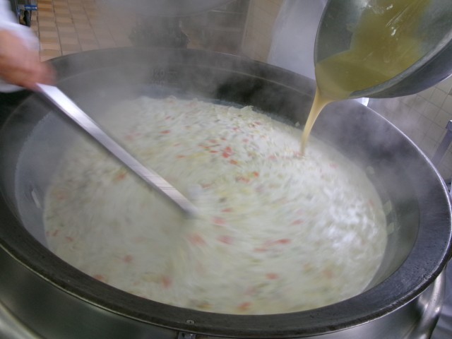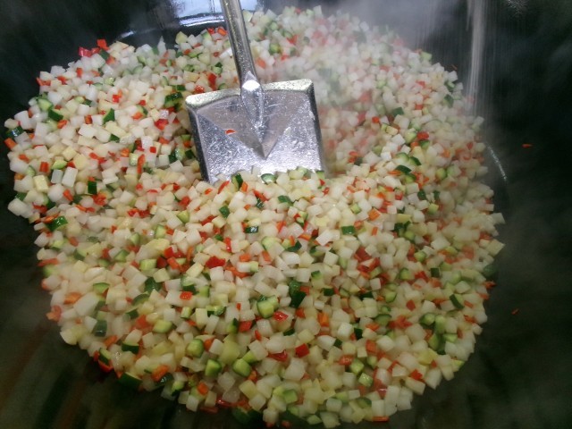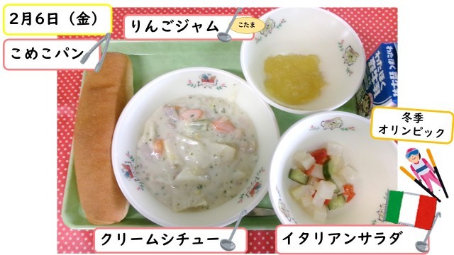 給食ではイタリアの国旗をイメージして大根、きゅうり、赤ピーマンを使って温サラダを作りました。