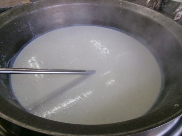 牛乳と合わせて塩、こしょうで味付けします。最後に生クリームとバターを入れて完成です🥔