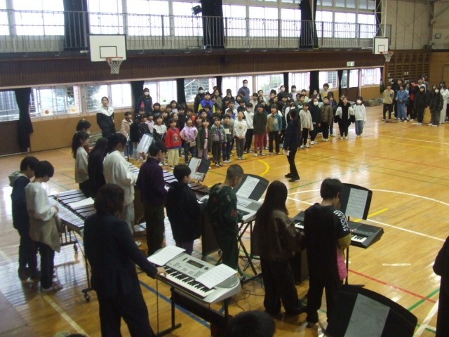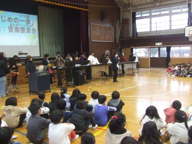 今朝は今年度最後の音楽朝会でした。それぞれの進級が近い子どもたちにふさわしく、「はじめの一歩」をみんなで歌いました。音楽委員会の子どもたちも、朝練習や休み時間の練習にがんばりました。みんなで声を合わせる楽しさや良さを大切にしていきたいと思います。