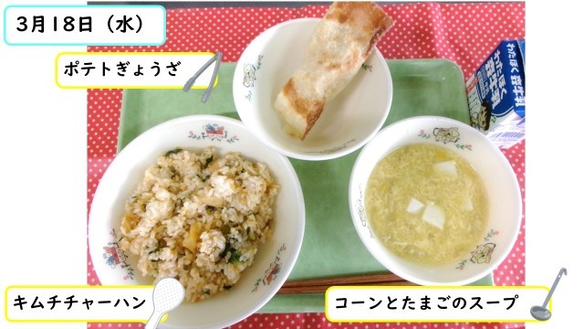 給食では八王子産白菜を使ったキムチを使って作っています。