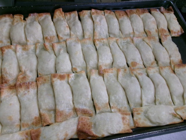 ポテトぎょうざは蒸したじゃがいもと炒めたたまねぎ、ツナを混ぜて餃子の皮に包んで焼きました。