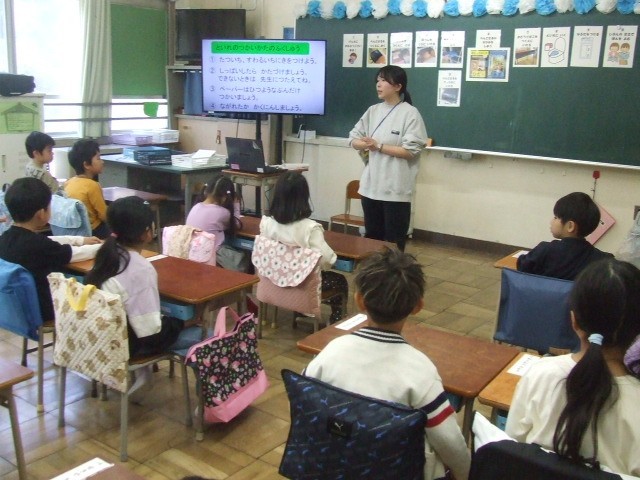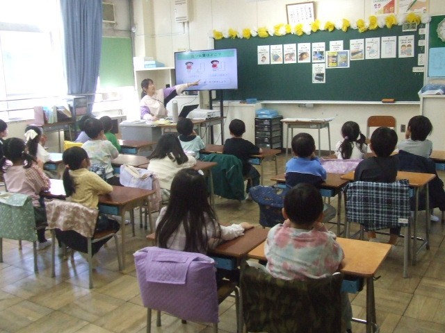 さっそく、授業の始まりです。挨拶や返事、話の聞き方や正しい姿勢、教室の過ごし方、ロッカーや靴箱・トイレの使い方等々、学校生活で困らないよう、覚えることがたくさんあります。頑張れ!1年生!
