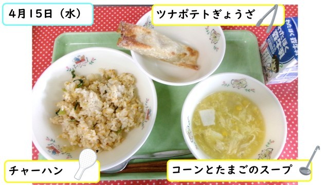 おかずはツナポテトぎょうざです。