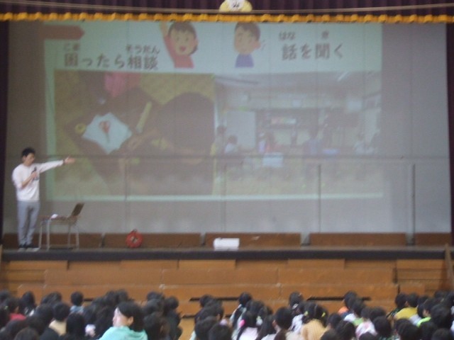 特別支援教育を推進するためには、本人はもちろん周囲の理解も不可欠です。今朝は山ゆり教室(特別支援教室)の先生方に、「山ゆり教室ではどんなことを学んでいるの?」をテーマにお話していただきました。「やまゆり教室に通っている友達もみんなも笑顔になるために学ぶところだよ」という教室の目的をはじめ、ゲームやクイズを交えながら分かりやすく伝えていただいたので、子どもたちも楽しみながら理解を深めることができたようです。