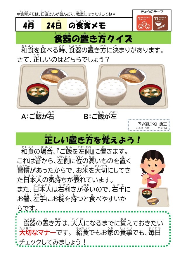 大人になるまでに覚えていきたい食事のマナーの一つです。