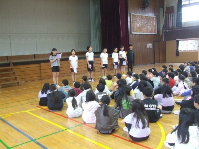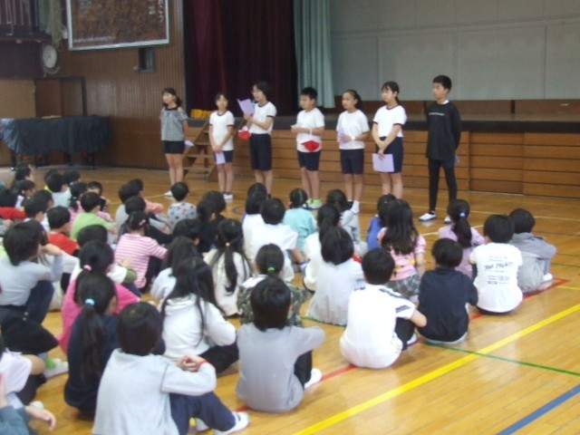 本校には7つの委員会があります。今朝は、6年生の委員長が全校児童に委員会の活動内容を紹介する「委員会紹介集会」が行われました。堂々とした発表に下級生も憧れてしまいますね!これからの活躍が楽しみです!