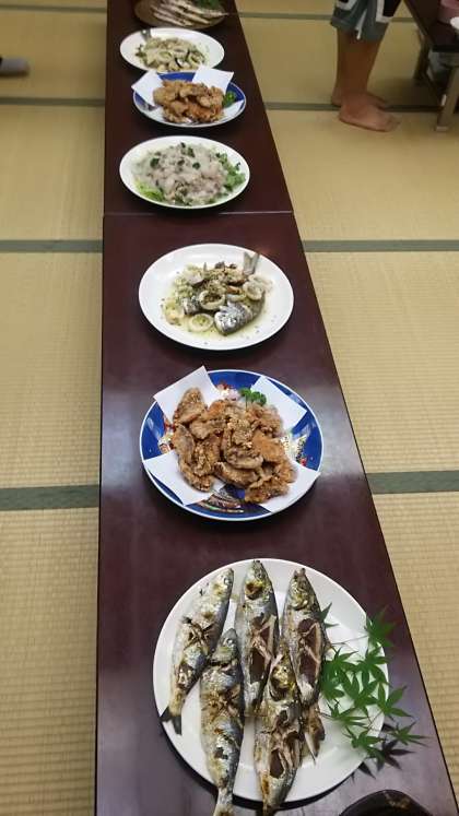 地引き網の収穫された魚も料理され、とても、美味しそうてす。