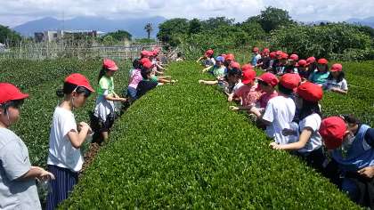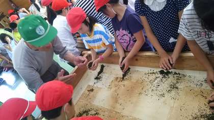 気温が上がって、暑くなっていますが、その中茶摘みの体験やてもみの体験をしてます。