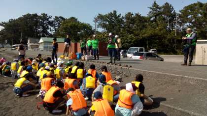 地引き網に替えて、投げ釣り体験をしました。