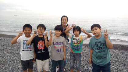 海岸では、鉢巻石を探します。良い石が見つかるかな。