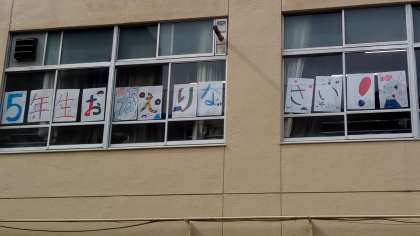 校舎には6年生からの、おかえりなさいエールがありました。ありがとう。