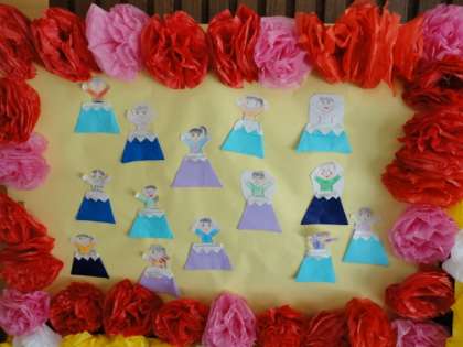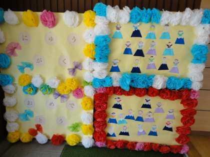 体育館入口には、2年生が飾りを作ってくれました。また、5年生は、招待状を作ってくれました。