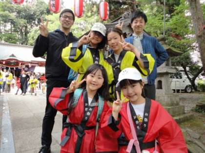 4月14日(土)、サタデースクールがありました。八幡神社のお神輿担ぎです。先生たちも来てくれました。