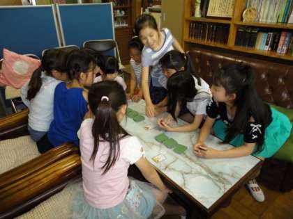 ある日の校長室です。百人一首で、坊主めくりをたのしんでいます。