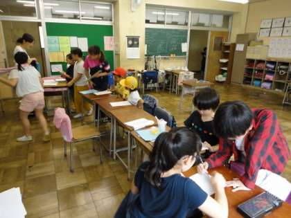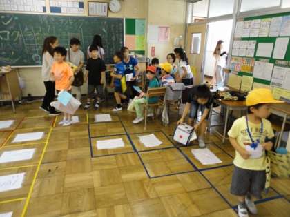 5月18日、子供たちが楽しみにしていた「子どもまつり」がありました。写真は4の1「暗号 犯人捜し」と5の2「城山 ポンポンすごろく」です。