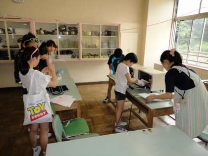 6の2では、大人気の「プラ板」を作っていました。電気を使うオーブンには、音楽の先生がついてくれていました。