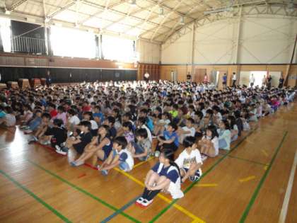 6月19日、「ユニセフ集会」を行いました。明日から3日間、児童会の子どもたちが募金活動を行います。