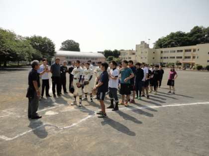 5月27日(日)、元八二丁目町会、消防団、城山中野球部生徒、本校職員の4チームで、ソフトボール大会を行いました。優勝は、城山中生が勝ちました。さすがです。