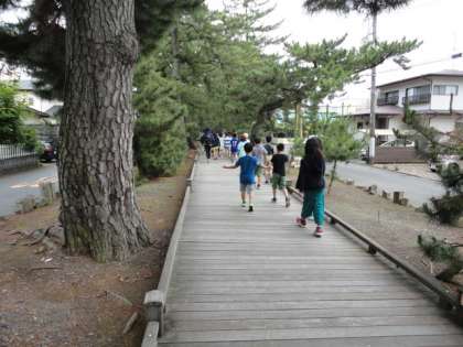 清水移動教室2日目の朝です。朝の散歩に羽衣伝説で有名な三保の松原まで歩きました。