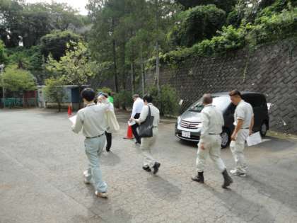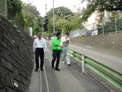 9月13日、通学路点検を実施しました。教育委員会、高尾警察署、学校関係者9人が集まり、集約した危険個所情報をもとに、現地確認を行い、対策を練りました。