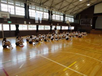 運動会まで2週間を切りました。今朝は全校応援練習のため、応援団が朝練習をしていました。