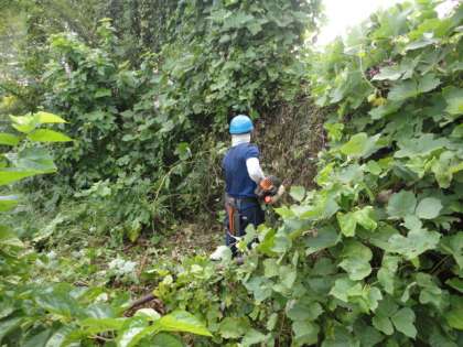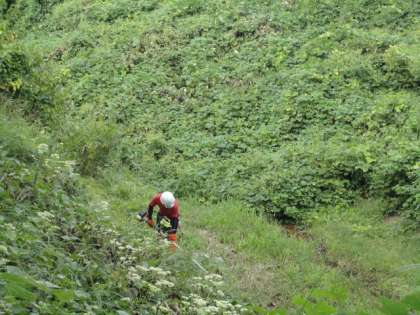学校敷地の西側法面(遊具方向)です。除草作業開始時の様子です。