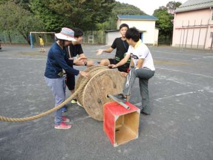 整備作業に合わせて、綱引きの綱の出し入れ作業を確認しました。かなりの重労働でした。