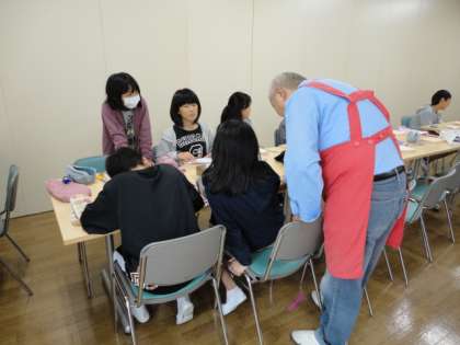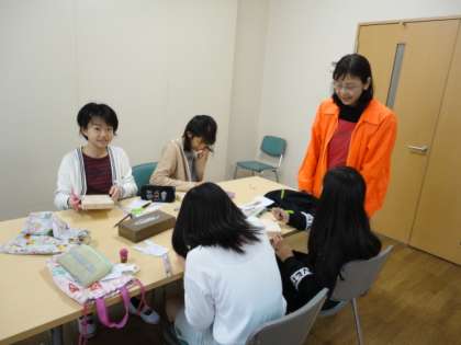 木工作品のデザイン画を描いている写真です。施設長さんをはじめ、3名の方にご指導いただきました。