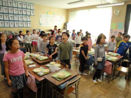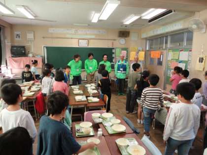 10月30日、学校ボランティア感謝集会に続いて、給食時間に「ふれあい給食」を実施しました。