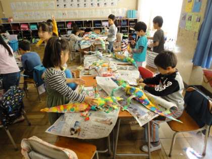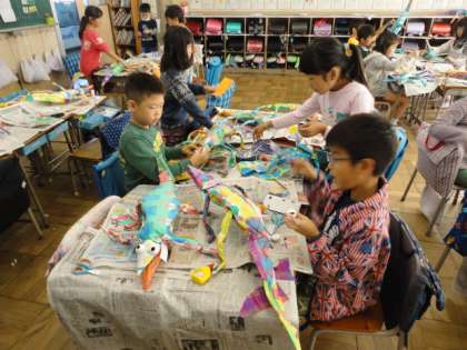 11月1日、2の2では図工作品を作っていました。カラフルなトカゲさんがいっぱいできていました。