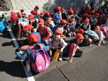 お天気も絶好の遠足日和でした。まずは、入り口を入り、トイレ休憩です。