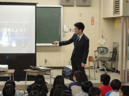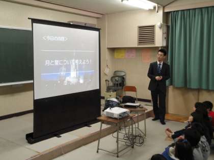 11月5日、相模原にあるJAXAから出前授業をしていただきました。4年生は月についての学習をしました。