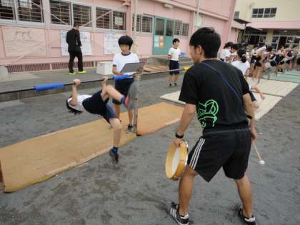 1組の子どもたちは、自分の課題達成に向け、協力し合いながら、技に挑戦していました。