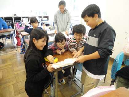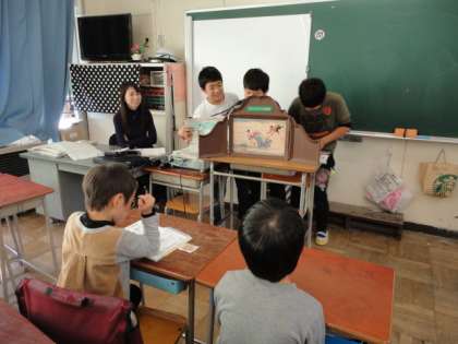 紙芝居を読み聞かせている班もありました。