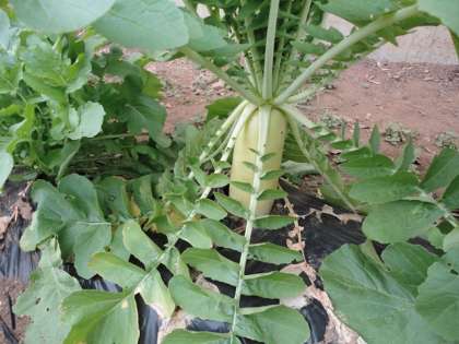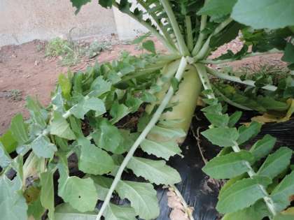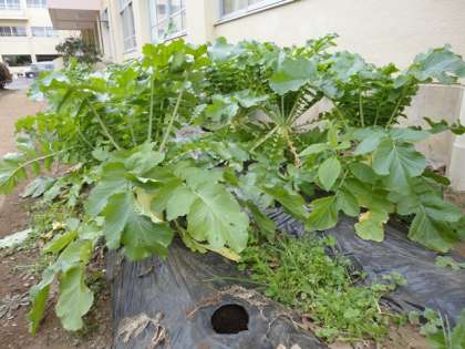 2年生が10月に植えた大根が、こんなに大きくなりました。いよいよ収穫です。