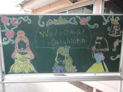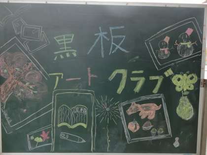 体育館前に設置された移動黒板には、黒板アートクラブが描いた作品がありました。