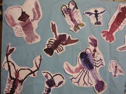 2年生の平面作品「ザリガニ」。その大きさから、ダイナミックさが伝わってきます。