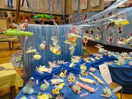 色とりどりのカラフルな魚たちが、体育館を泳ぎ回ります。