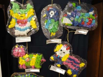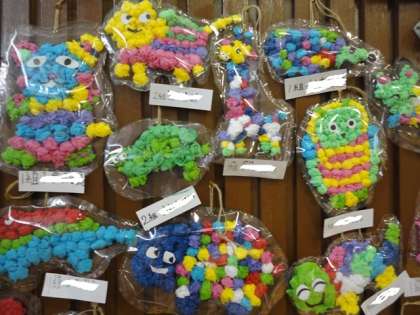 お花紙を丸めて、カラフルでかわいい動物たちを作りました。とても人気があった作品です。