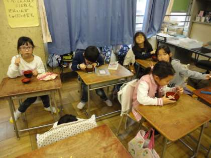 さらに、おかわりしている子もいました。自分たちで育てた大根です。美味しさも格別ですね。